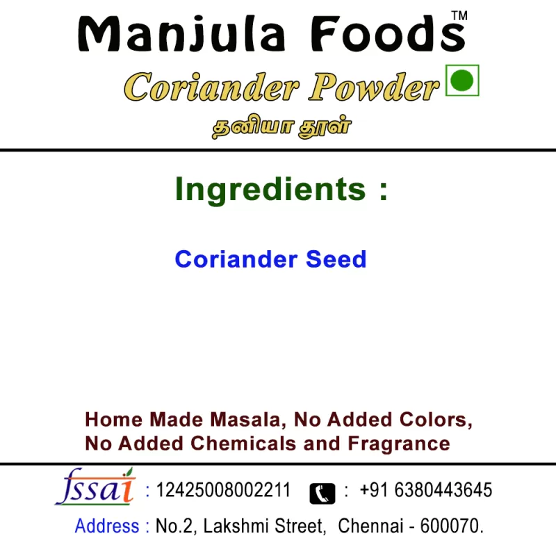 Enhance the flavour of your everyday cooking with Manjula Foods Farm Fresh Coriander Powder, the perfect kitchen essential made from premium quality coriander seeds. Known as Dhaniya Powder in Indian households, this spice adds a mild, earthy aroma and subtle citrusy notes that beautifully elevate dals, curries, gravies, marinades and more.