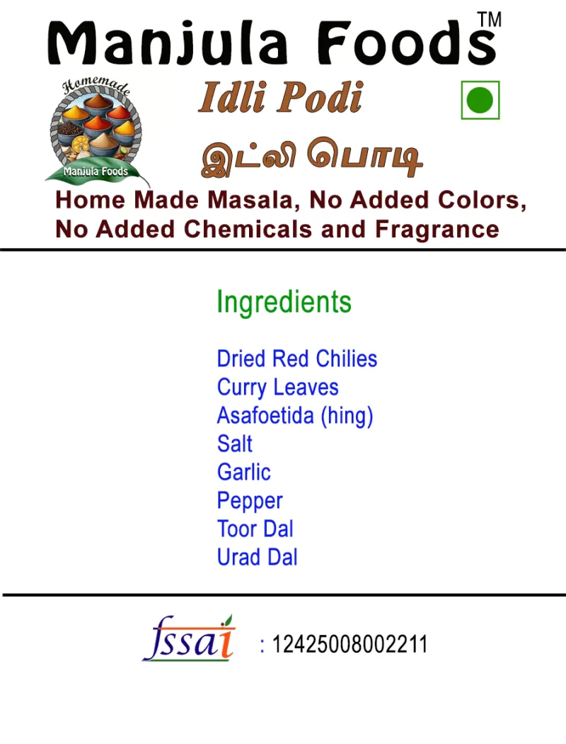 Manjula Foods Homemade Style Idli Milagai Podi – Perfect Blend for Idli & Dosa (200g)