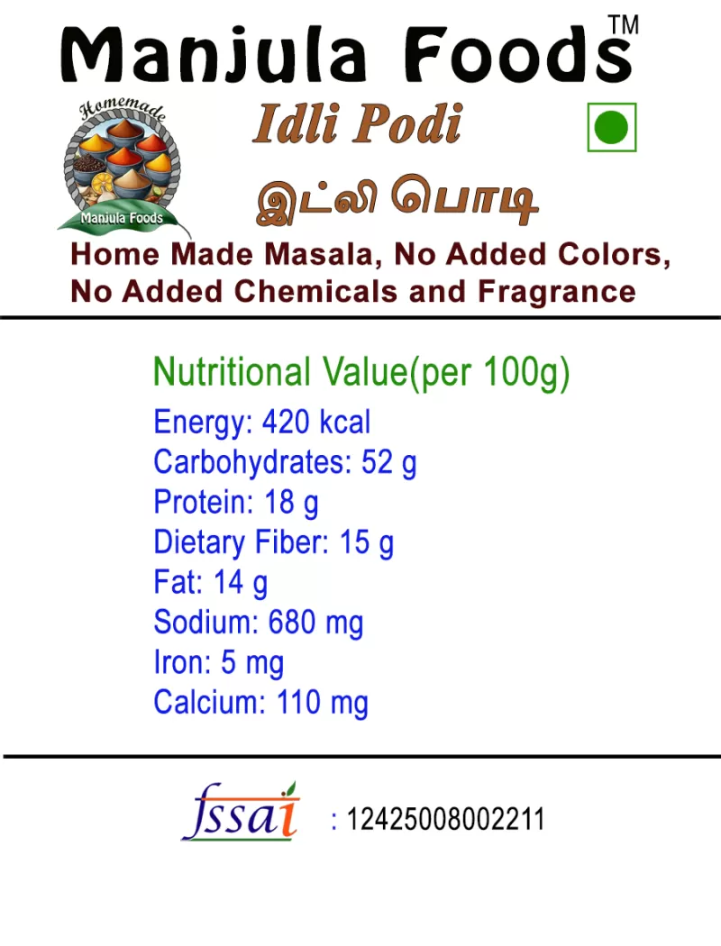 Natural & Flavorful Crafted without artificial colors or unnecessary fillers, this traditionally prepared powder stays true to its South Indian roots with a rich, smoky aroma and balanced spice level.