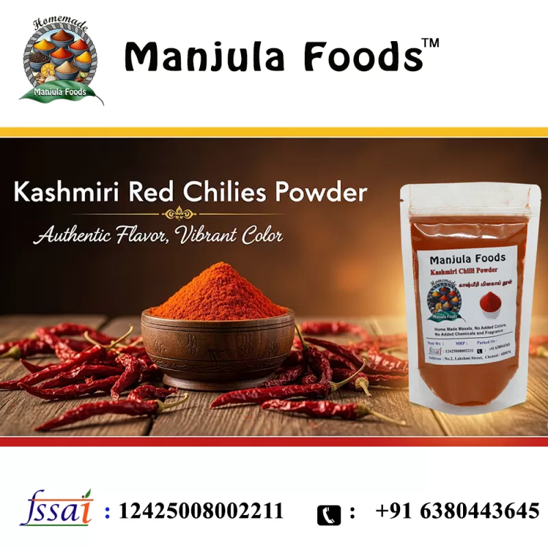 Bring authentic colour and flavour to your cooking with Manjula Foods Kashmiri Chilli Powder — a premium spice known for its vibrant red hue, mild heat and rich, earthy aroma. Made from carefully selected premium Kashmiri chillies, this chilli powder adds visual appeal and balanced spice to your favourite dishes without overwhelming heat.