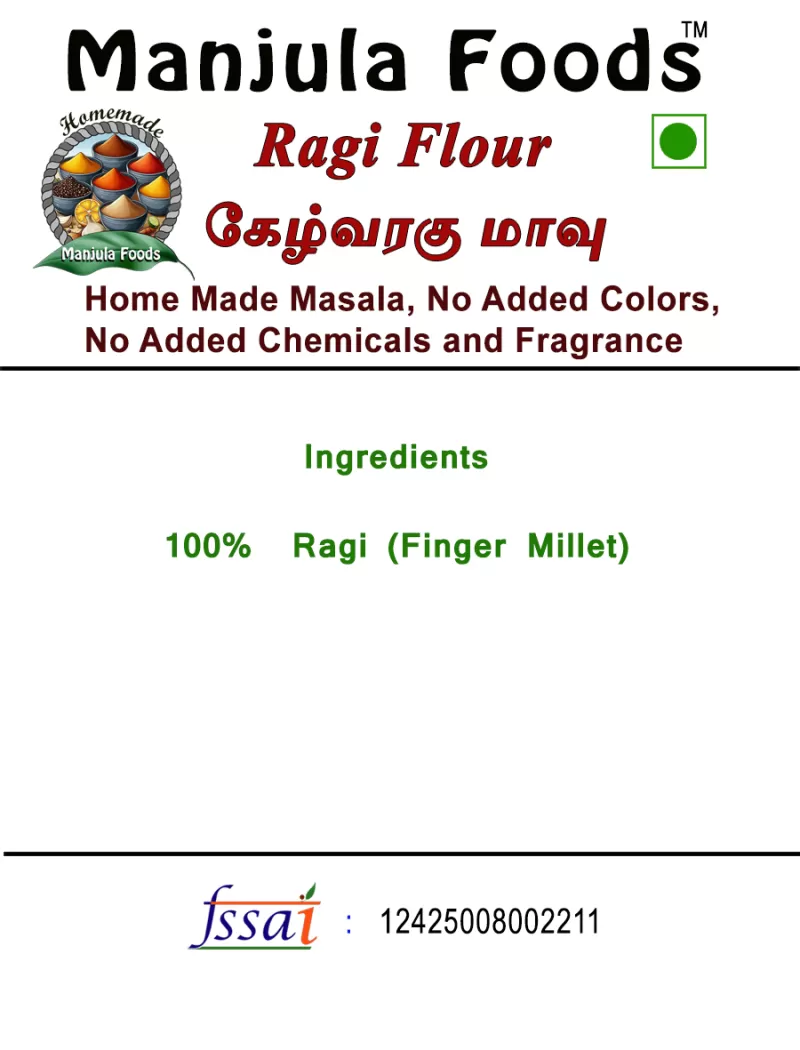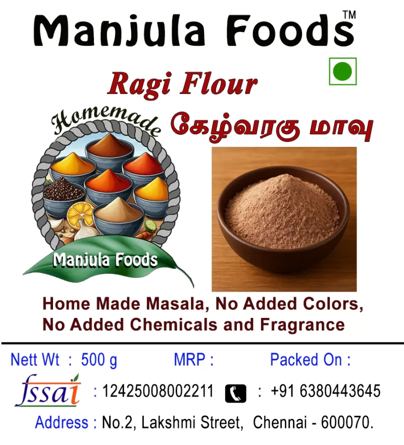 Manjula Foods Premium Ragi Flour | 100% Natural | High Fiber & Calcium | Pure & Healthy Choice (500 g)