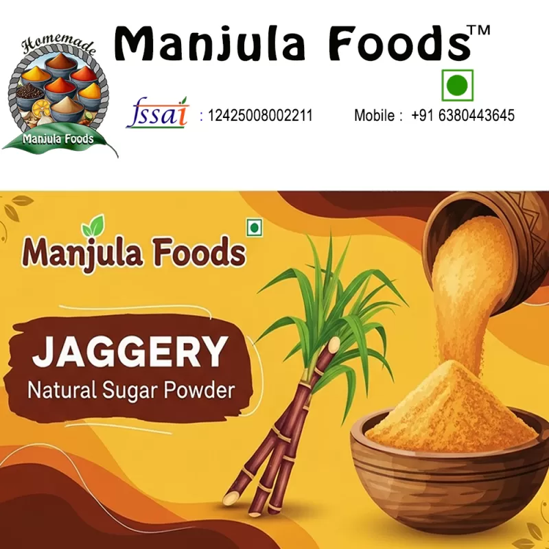 Experience the wholesome sweetness of Manjula Foods Pure Natural Nattu Sarkarai, a traditional country sugar crafted from freshly extracted 100% natural sugarcane juice using age-old methods. Unlike refined white sugar, this unrefined jaggery powder retains its natural minerals, rich caramel notes and earthy aroma — making it a healthier and more flavorful sweetening choice for your daily life.