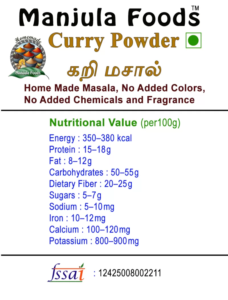 Bring authentic, restaurant-style flavours to your kitchen with Manjula Foods Traditional Chicken & Mutton Curry Masala. Specially crafted using a balanced blend of premium spices, this rich and aromatic curry powder adds depth, warmth, and complexity to your meat curries every time.